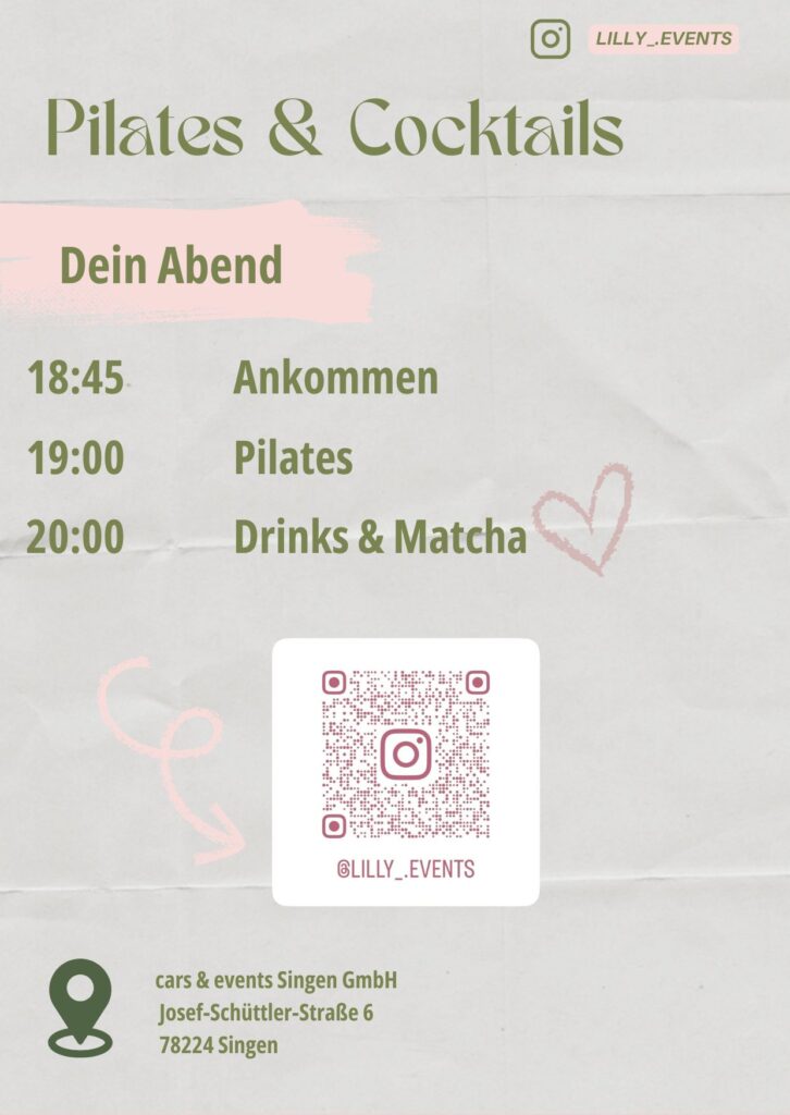 Starte mit einer geführten Pilates-Session und lasse den Abend anschließend bei Drinks und entspannter Atmosphäre ausklingen.
